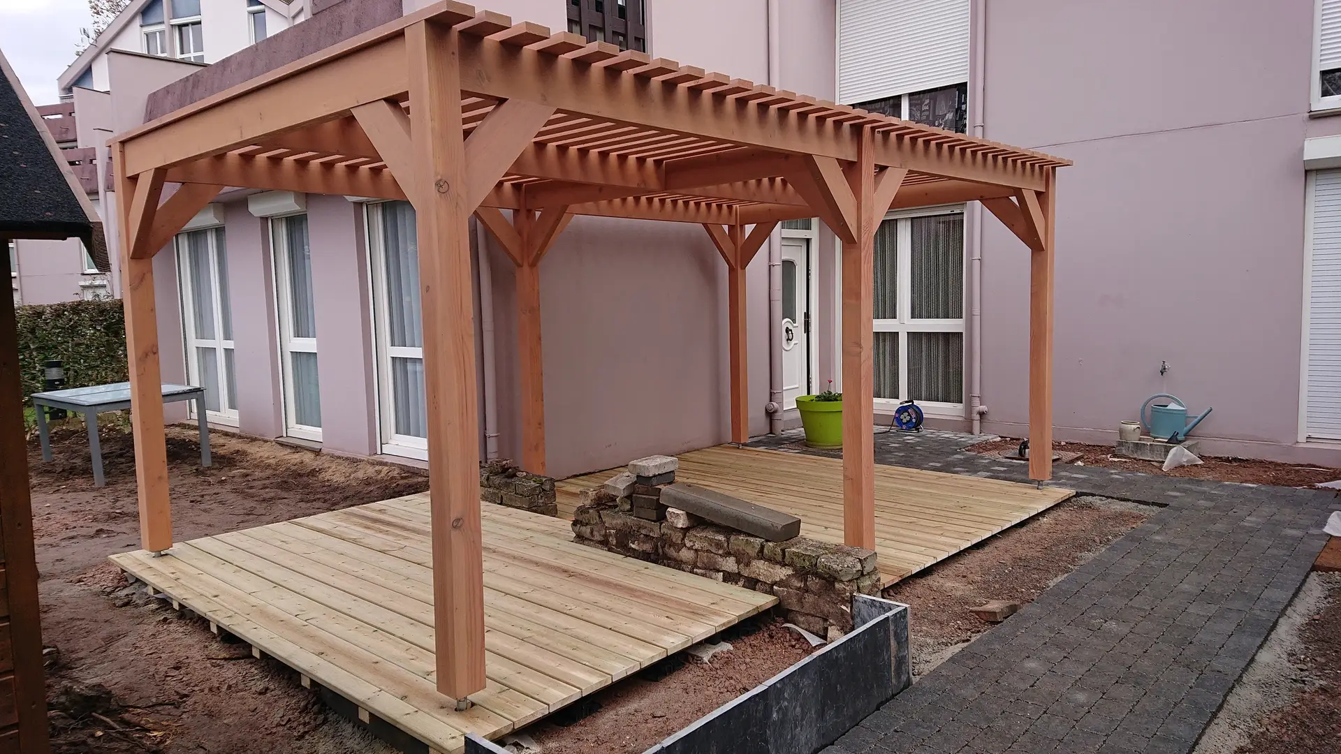 - La Pergola Autoportée (Îlot) : Idéale pour créer un espace détente indépendant au cœur du jardin, près d’une piscine ou d’un bassin.