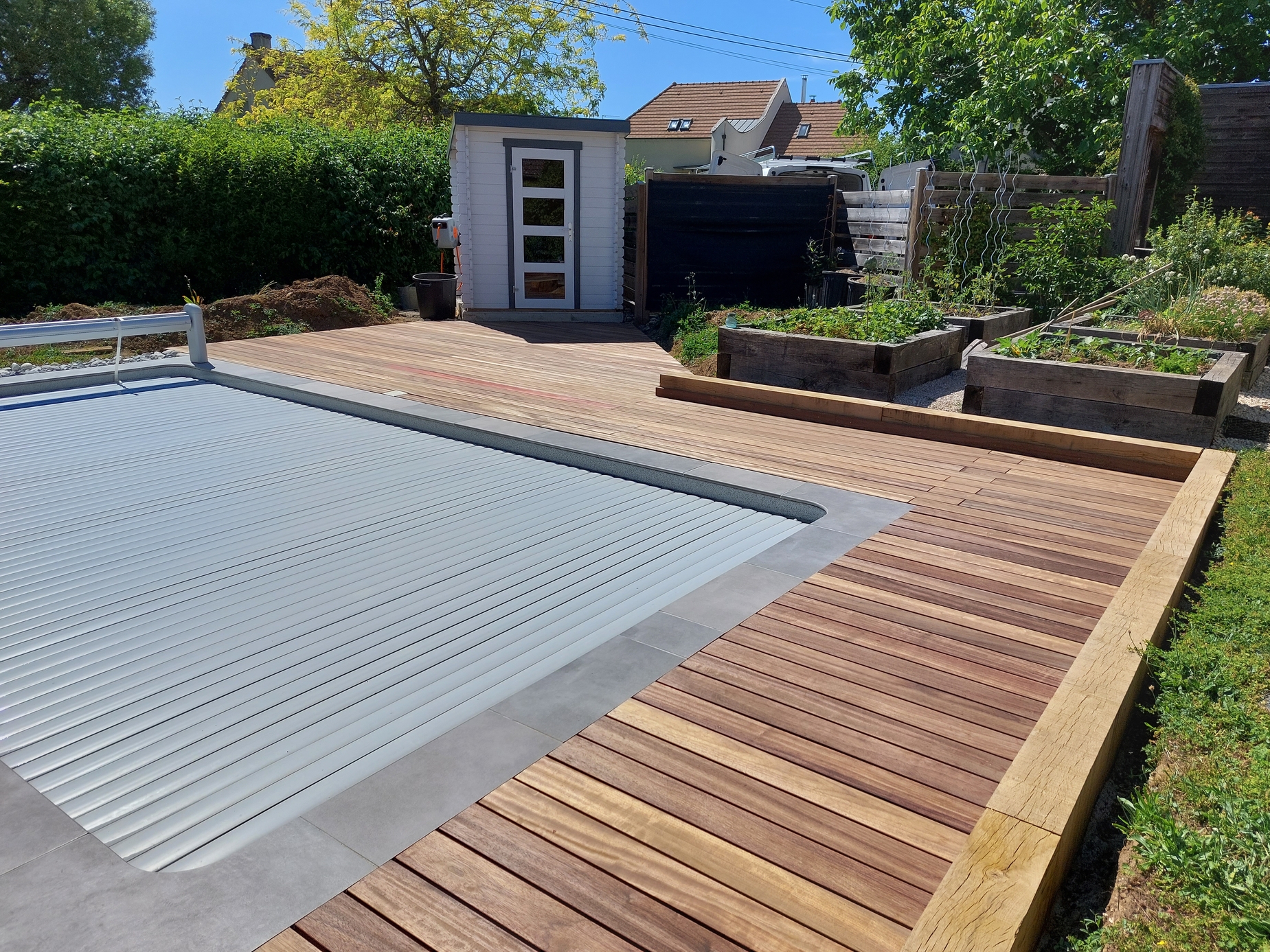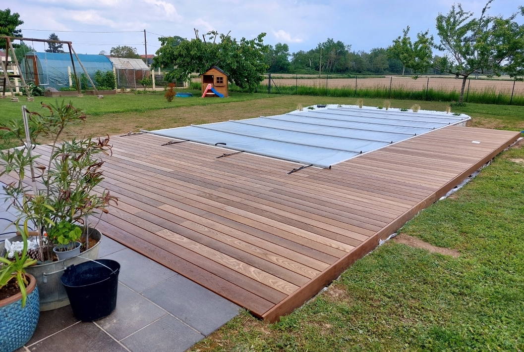 - Contours de piscine : Le bois est la solution idéale pour les plages de piscine, glissance maîtrisée, ne brûle pas les pieds.