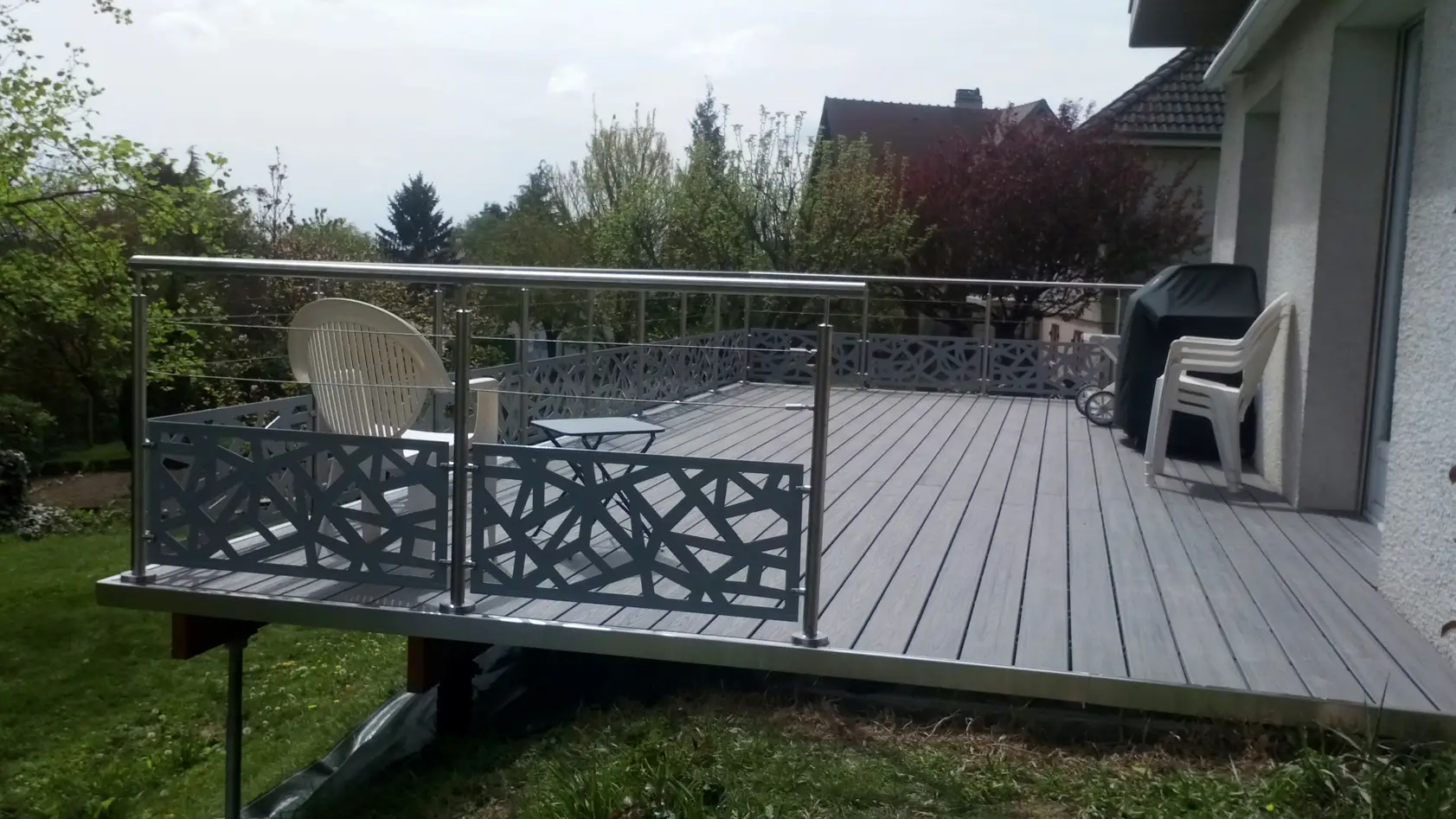 - Structure Aluminium : Système de pose sur rails aluminium (Système GRAD®). Totalement imputrescible, fixation invisible.