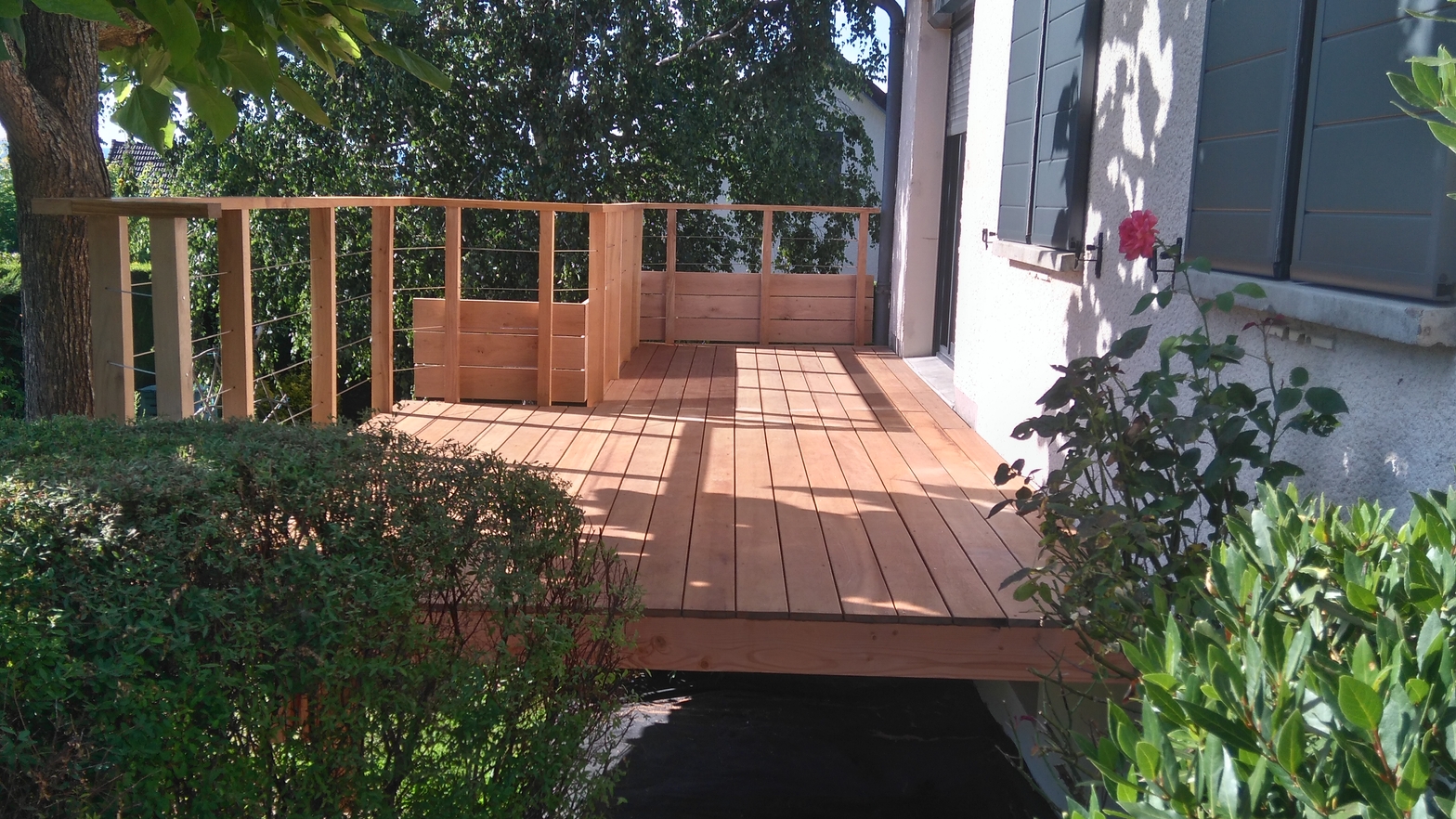 Durabilité | Les terrasses bois sont soumises à garantie décennale, selon son essence, le platelage peut durer plusieurs décennies. |